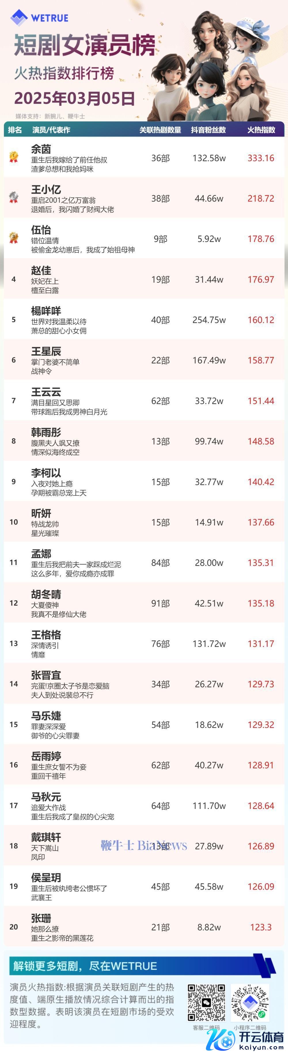 3月7日,为匡助短剧从业者提供更多信息,专注于短剧报说念的新腕儿和科技媒体鞭牛士勾通WETRUE短剧热度榜共同推出多种短剧热度榜。