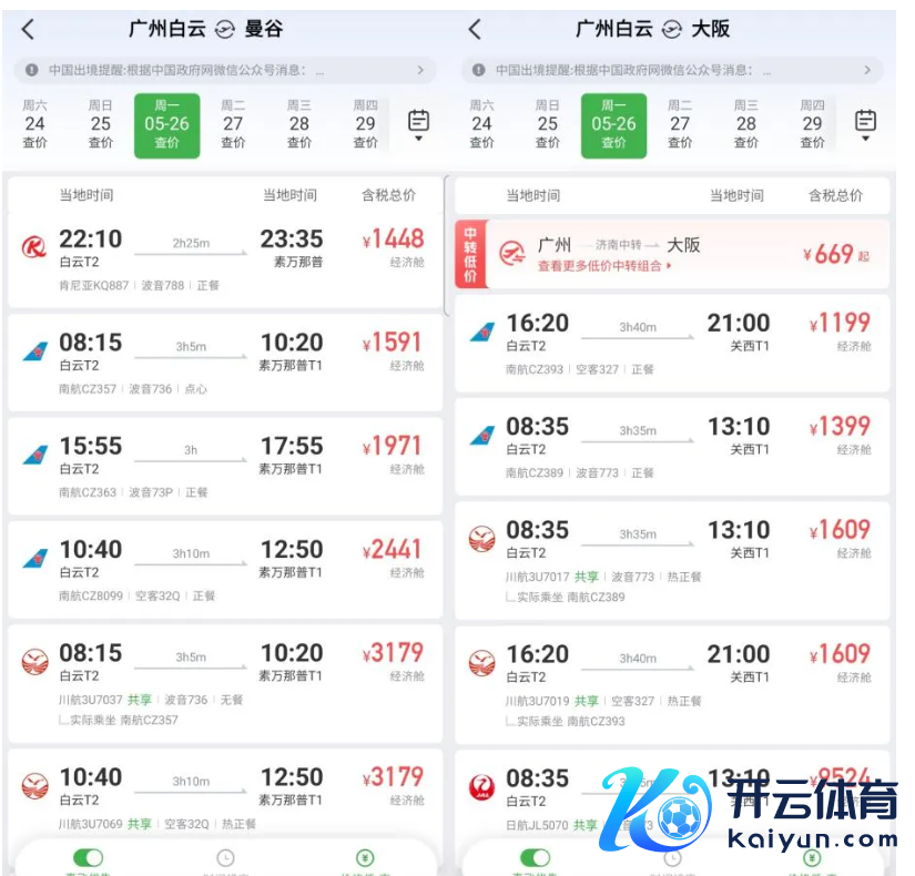 从航班价钱来看,笔者差异搜索了广州-曼谷,广州-大阪的机票,价钱依然很接近。