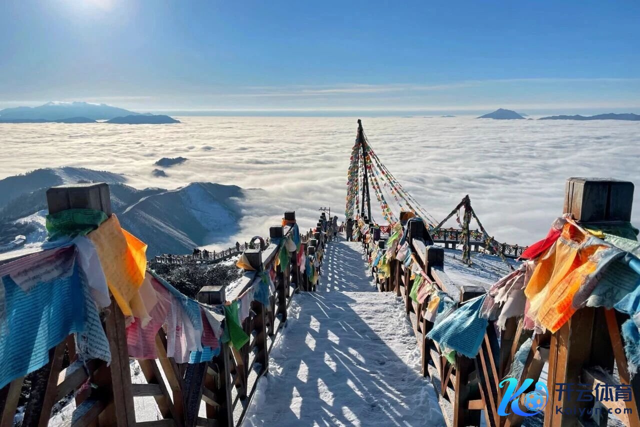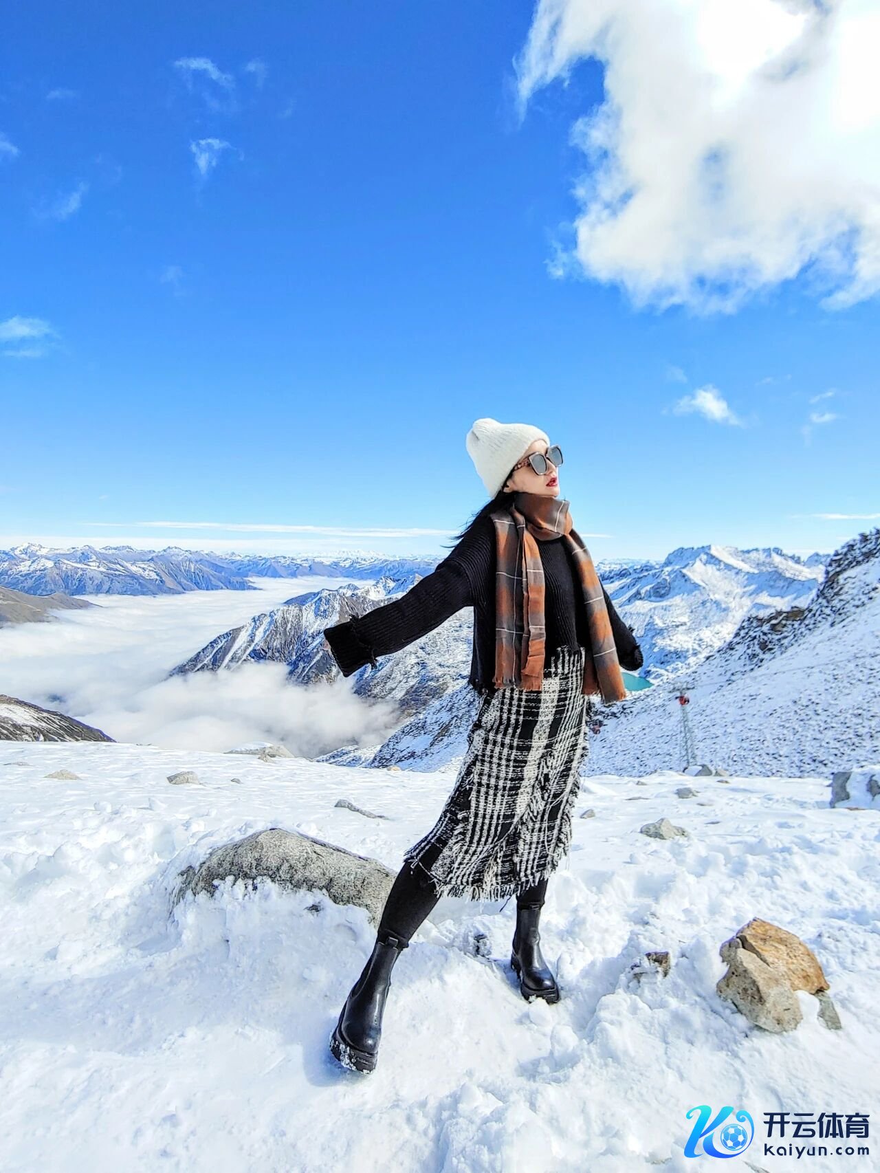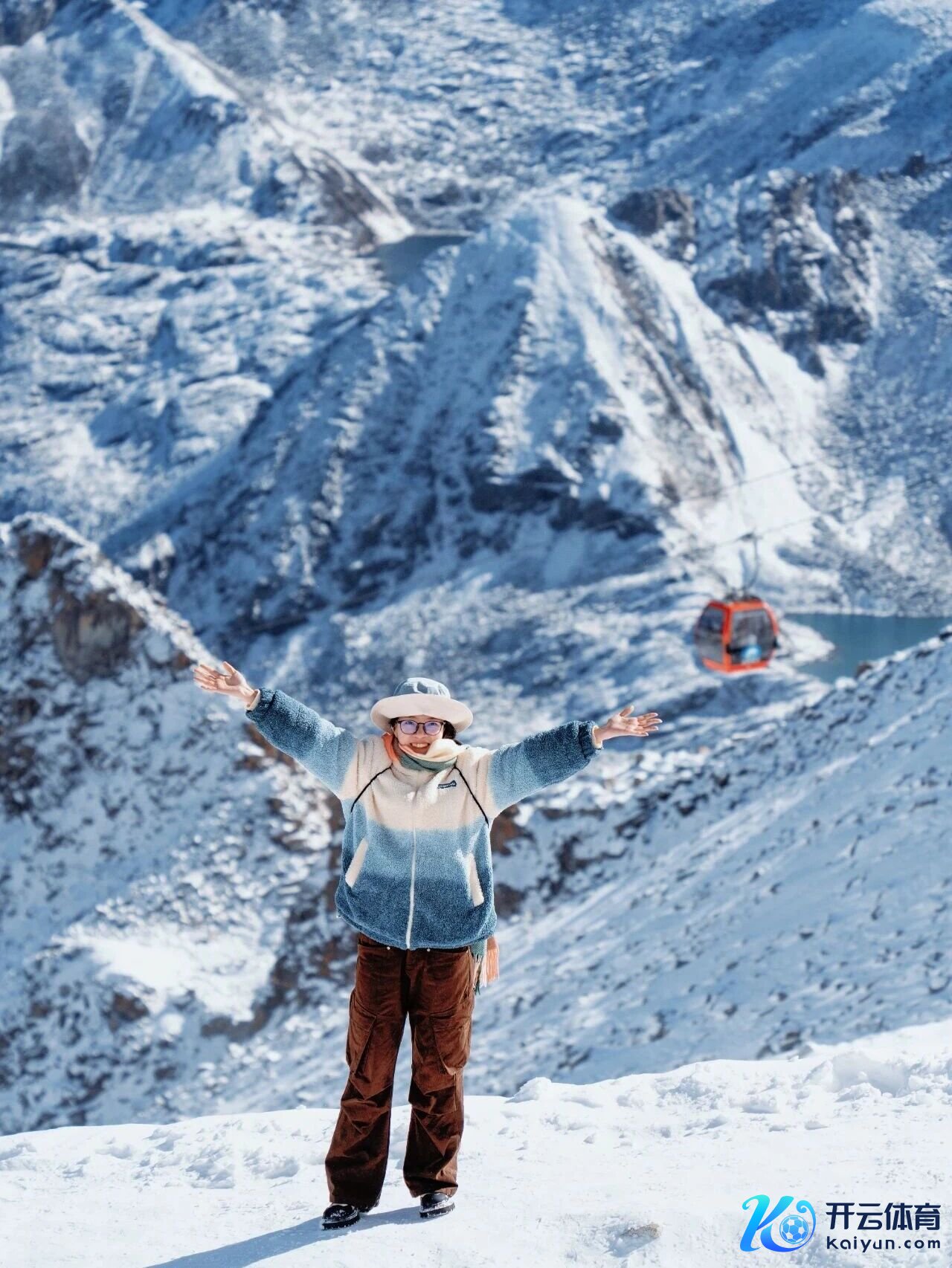 当缆车抵达海拔4860米的雪山之巅,站在不雅景台上,群山在阳光下熠熠生辉,云海翻腾,寰宇开朗,你仿佛真是站在了云表之上。