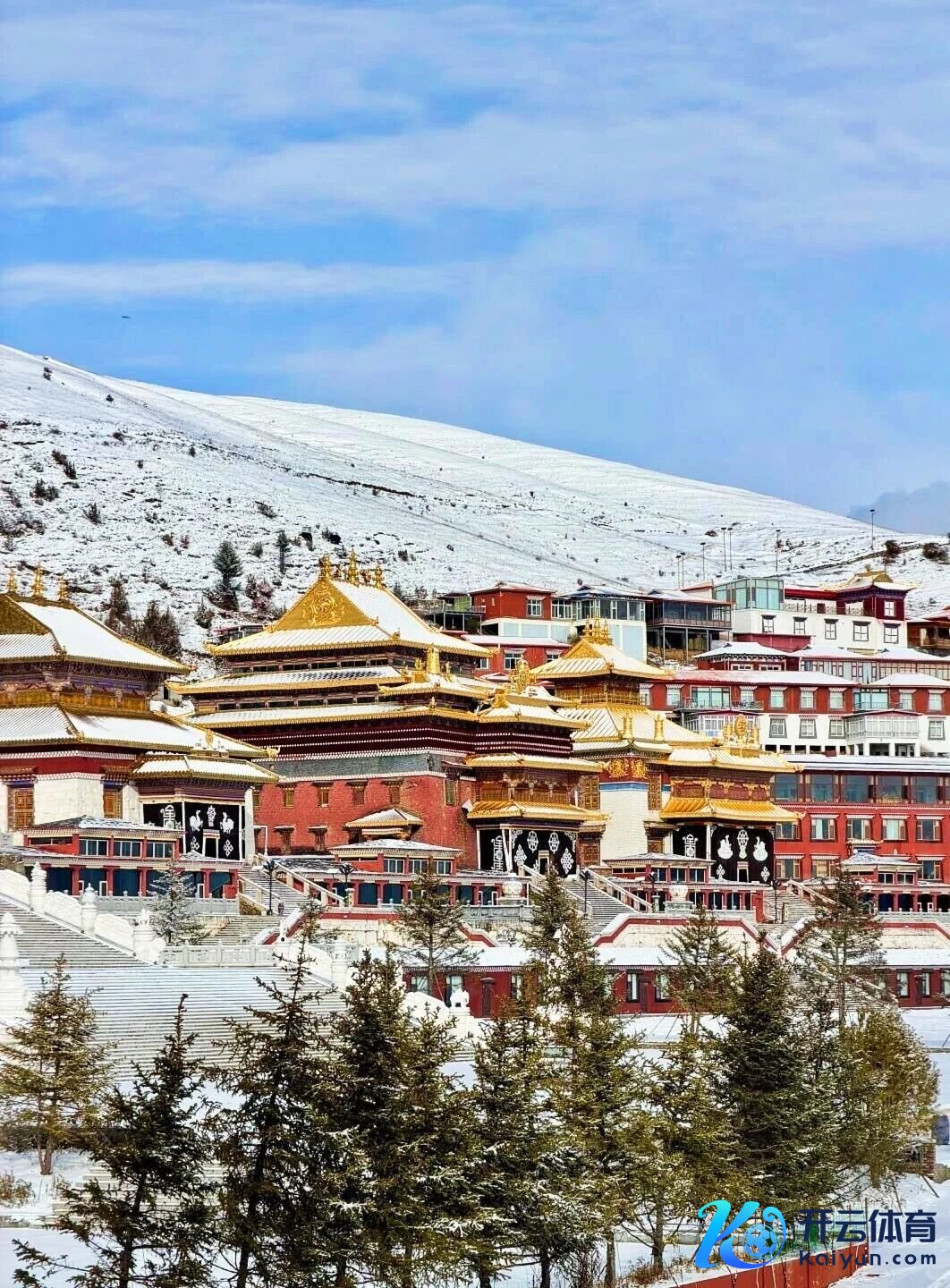 坐落在雪山环抱山坡上的昌列寺,红墙金顶在纯洁白雪的烘托下,显得非常尊严与留神,被誉为川西的“云顶玉阙”。