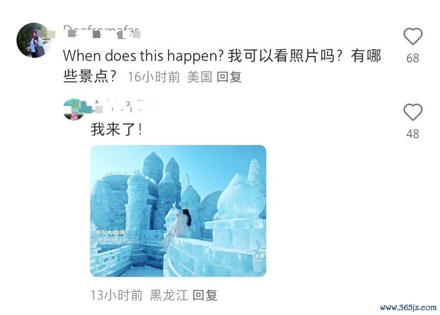 指摘区里,被哈尔滨好意思景颠簸到的好意思国网友们,一口一个amazing,还商酌是否有更多哈尔滨的相片。中国网友们一边说着welcome,一边奉上最新相片和游玩攻略。