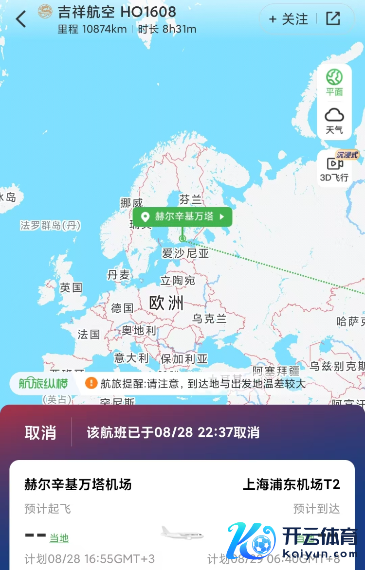 上游新闻记者在航旅纵横APP上查询到,吉利航空HO1607航班于北京时候8月28日上昼10时05分从上海浦东机场升空,当地时候28日下昼13时47分抵达赫尔辛基万塔机场。而正本盘算于当地时候28日16时55分从赫尔辛基万塔机场飞往浦东机场的HO1608航班,在当晚取消。