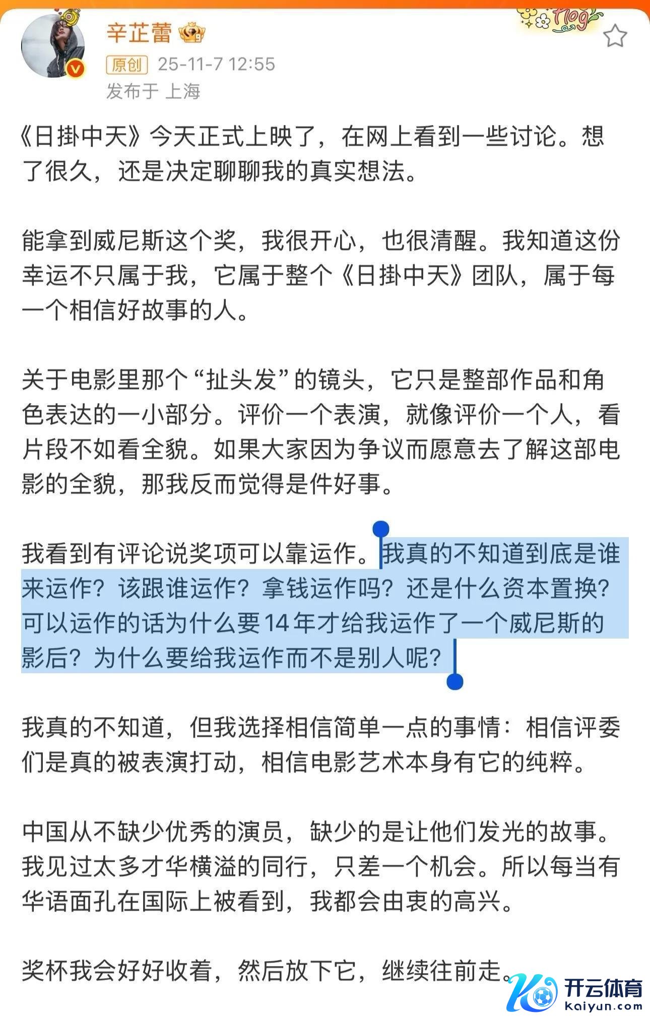 辛芷蕾凭《日卦中天》拿下威尼斯影后,本该是国货女演员的高光时辰,恶果争议径直炸了锅。