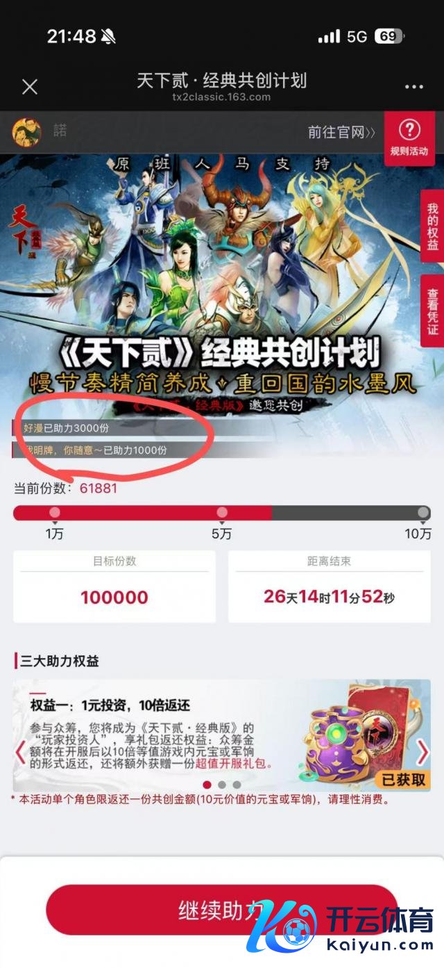 在开服前的这波"众筹规划"里,不仅拓荒组策划会依期在群里同步职责发扬。而且众筹的份数越多,玩家的呼声越高,推敲的额外权利就越多,比照及时更新拓荒发扬的拓荒过程请问会和线上答疑会,以及平直访谒网易总部的线下试玩行为等等——从这些举措里不出丑出,比起单纯的"充值返利"拉东谈主头,《寰宇贰 · 经典版》"众筹规划"更大的意旨,是鼓舞扫数游戏箝制完了正向发展。