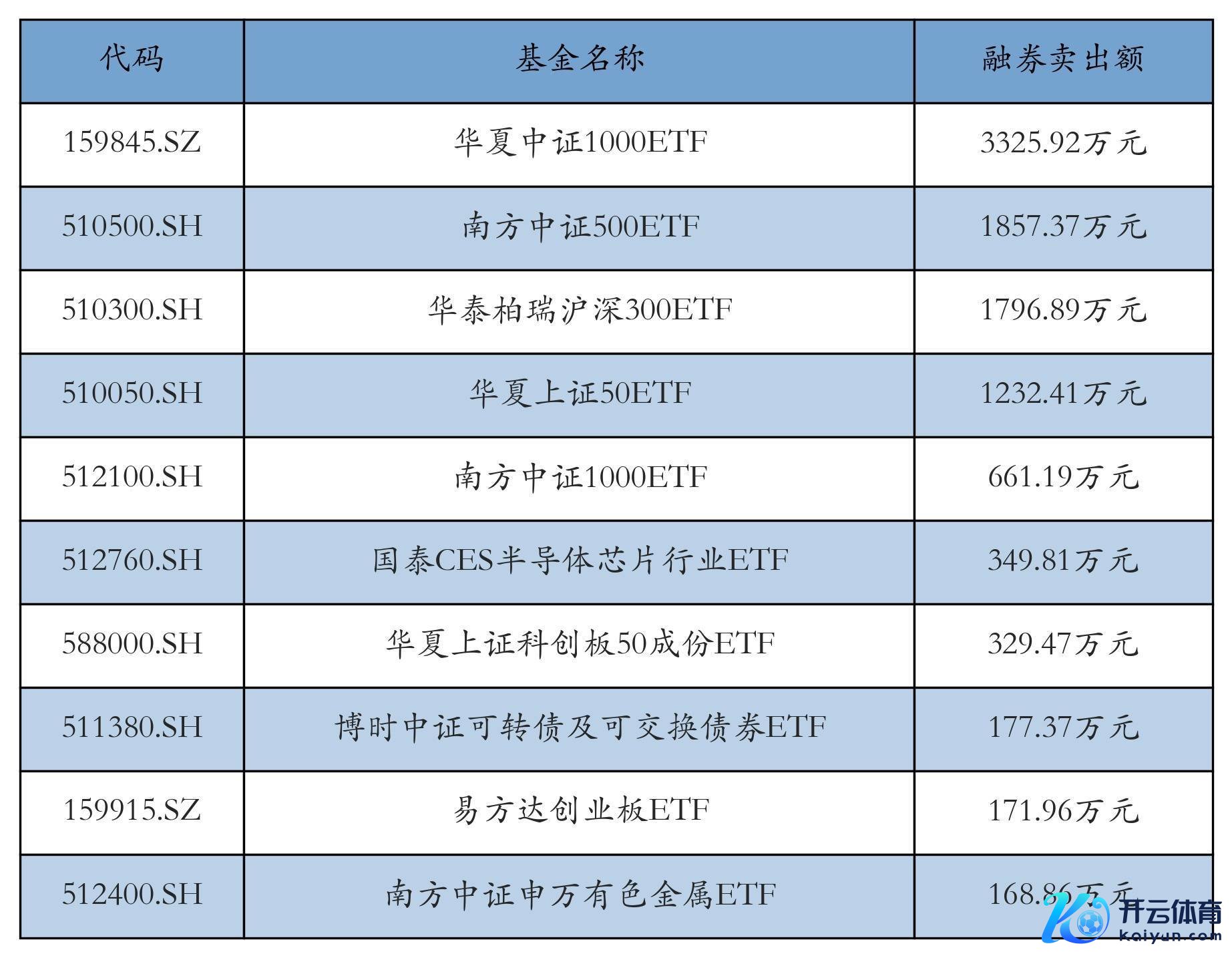 11月11日ETF融券卖出额前三位分辨为:中原中证1000ETF(3325.92万元)、南边中证500ETF(1857.37万元)和华泰柏瑞沪深300ETF(1796.89万元),前10具体见下表: