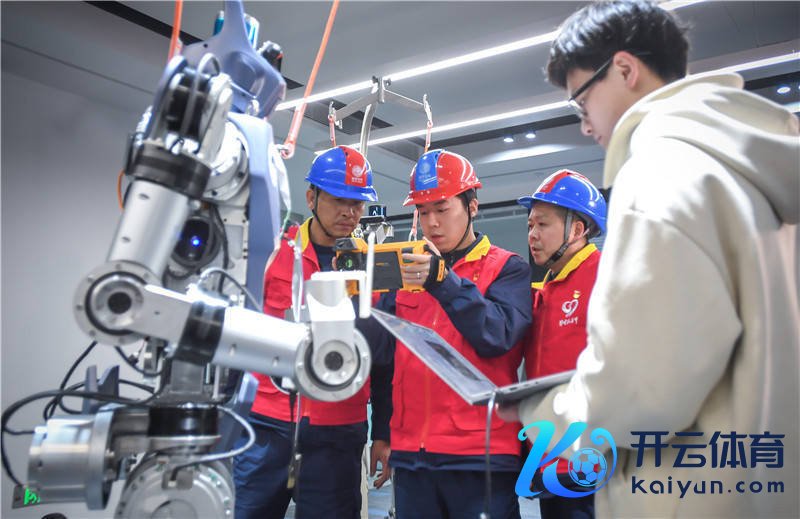武汉格篮若智能本领股份有限公司内,国网武汉供电公司使命主谈主员现场做事,为企业研制东谈主形机器东谈主提供保险
